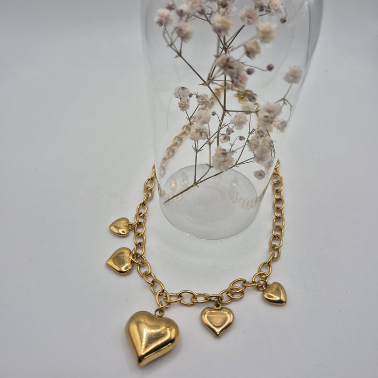 Collier chaîne maillon doré avec charms cœurs.