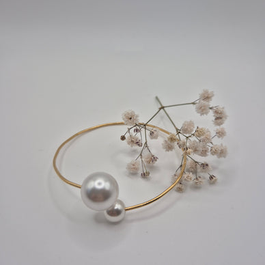 Bracelet jonc doré fin avec deux perles en fermoir.