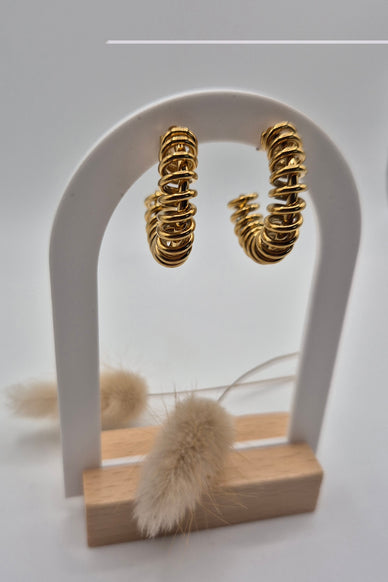 Boucles d'oreilles dorées multi cercle autour.
